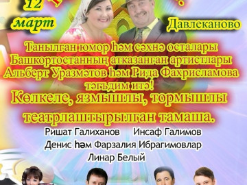 Театрализованный концерт «Күршеләр кунак җыя» Дорогие друзья! Приглашаем Вас на театрализованный концерт «Күршеләр кунак җыя». Гульбира и Габдрашит живут в прекрасной деревне. Какие же ещё приключения их ждут? Как ... 18 февраля 2024 190 Читать далее