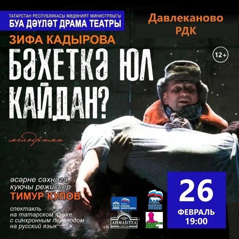 Главная / Афиша / Спектакль «Бэхеткэ юл кайдан?» Спектакль «Бэхеткэ юл кайдан?» Цена билета: 600 рублей