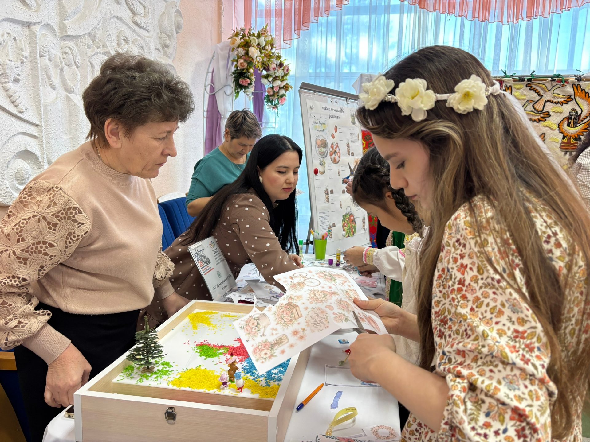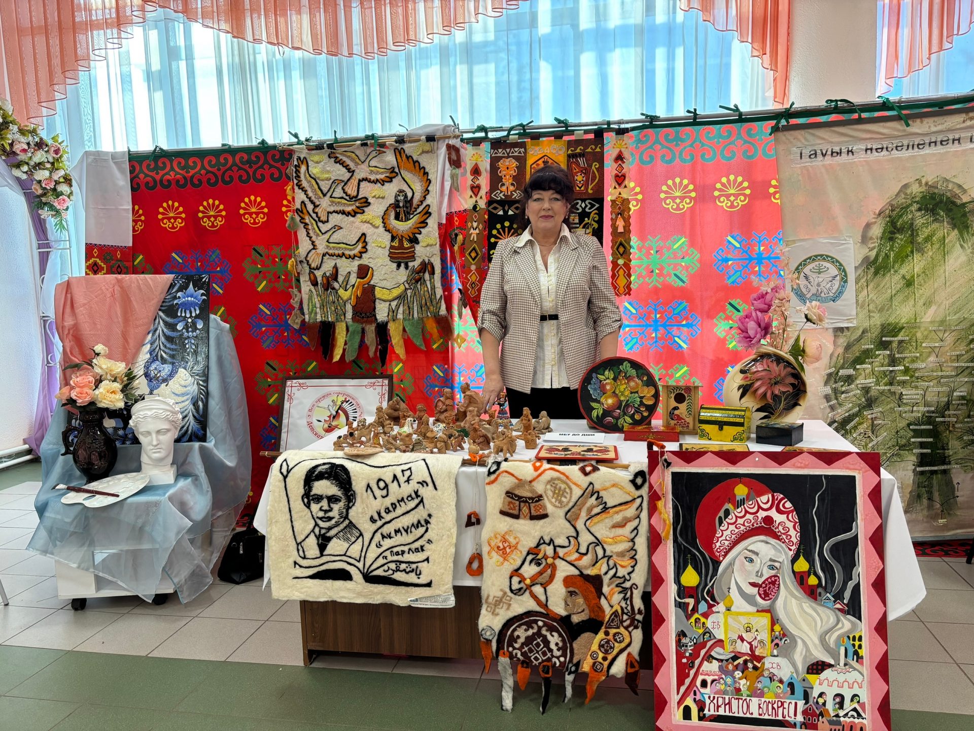В фойе второго этажа рдк гостей ждали интересные мастер-классы и яркие выставки декоративно-прикладного искусства, созданные руками талантливых мастеров нашего района.