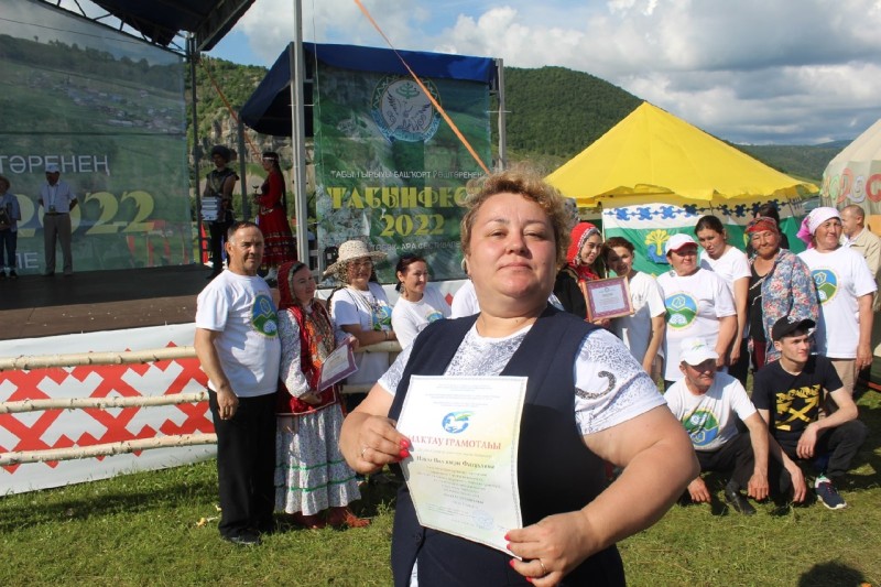 Куратору делегации из Давлекановского района Наиле Фазуллине вручили почётную грамоту Всемирного курултая башкир за пропаганду башкирского языка, сохранение и развитие национальных традиций.