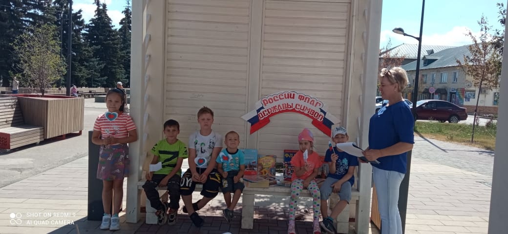 18 августа сотрудники Центральной детской библиотеки провели очередную акцию литературная скамейка «России флаг — державы символ». С детьми была проведена беседа — викторина, в ходе которой любознательные читатели подробно познакомились с историей возникновения Государственного флага России, узнали о том, когда впервые появился триколор, что символизируют цвета, в каком году учрежден этот праздник.