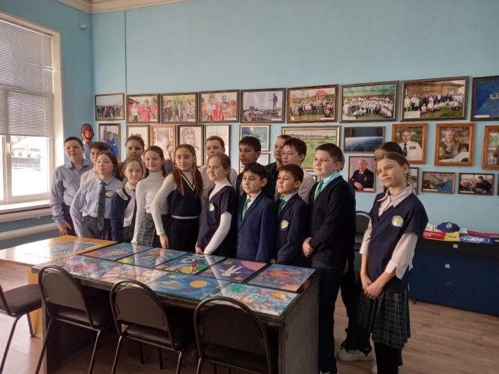 Космический класс пятой гимназии под руководством Н. Стретенской сегодня побывал в историко-краеведческом музее и ознакомился с экспонатами и историей Международной аэрокосмической школы имени Урала Султанова, которая находится в д. Калиновка Давлекановского района.
