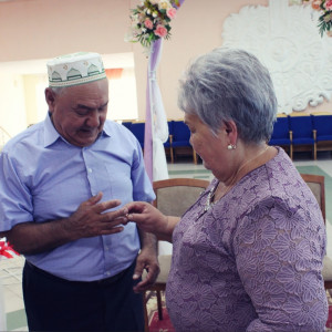 Счастливые юбиляры вошли в зал под звуки свадебного «Марша Мендельсона», торжественно расписались в Почетной книге юбиляров города Давлеканово, станцевали прекрасный вальс, вспомнив свой первый супружеский танец. Работники ЗАГС Давлекановского района поздравили супругов Султангалеевых, вручили подарки, поздравительные открытки, благодарственное письмо и пожелали еще много лет счастливой семейной жизни.