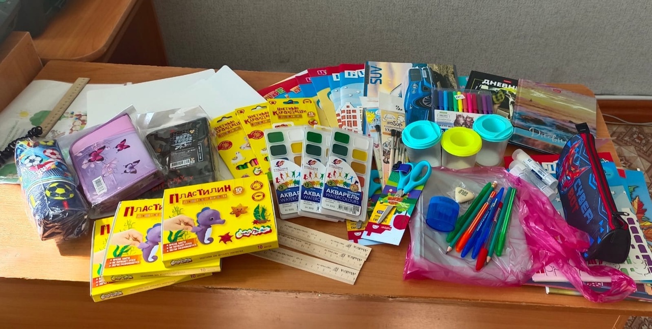 Канцелярские товары, письменные принадлежности, тетради, принадлежности для рисования, наборы для детского творчества; рюкзаки, школьная форма, учебники, художественная литература – новые или в хорошем состоянии будут переданы нуждающимся семьям.