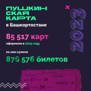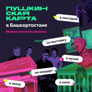 Молодежь Башкортостана может бесплатно посещать концерты, музеи, театры, кино, лектории и другие культурные мероприятия по «Пушкинской карте». В этом году в республике оформили 85 517 карт, по ним купили 876 578 билетов.