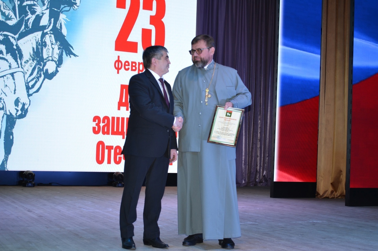 В этот день со сцены чествовали защитников нашего Отечества — участников Великой Отечественной войны, ветеранов военной службы, участников боевых действий, тех, кто сегодня участвует в специальной военной операции и выполняет воинский долг перед Родиной.