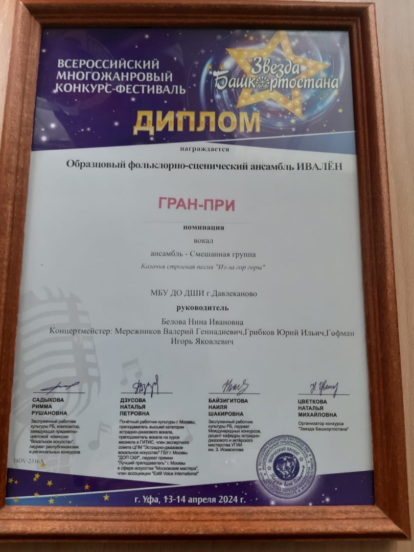 13-14 апреля 2024 года в нашей Республике Башкортостан в г. Уфа прошел Всероссийский многожанровый конкурс-фестиваль «Звезда Башкортостана».