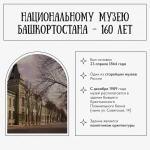 Поздравляем сотрудников Национального музея Башкортостана с юбилеем, а всех жителей республики приглашаем на выставки.