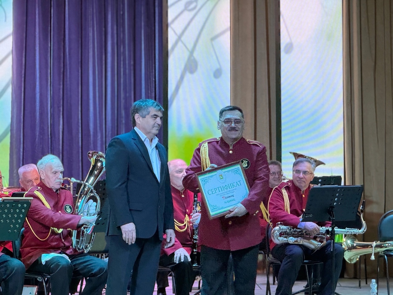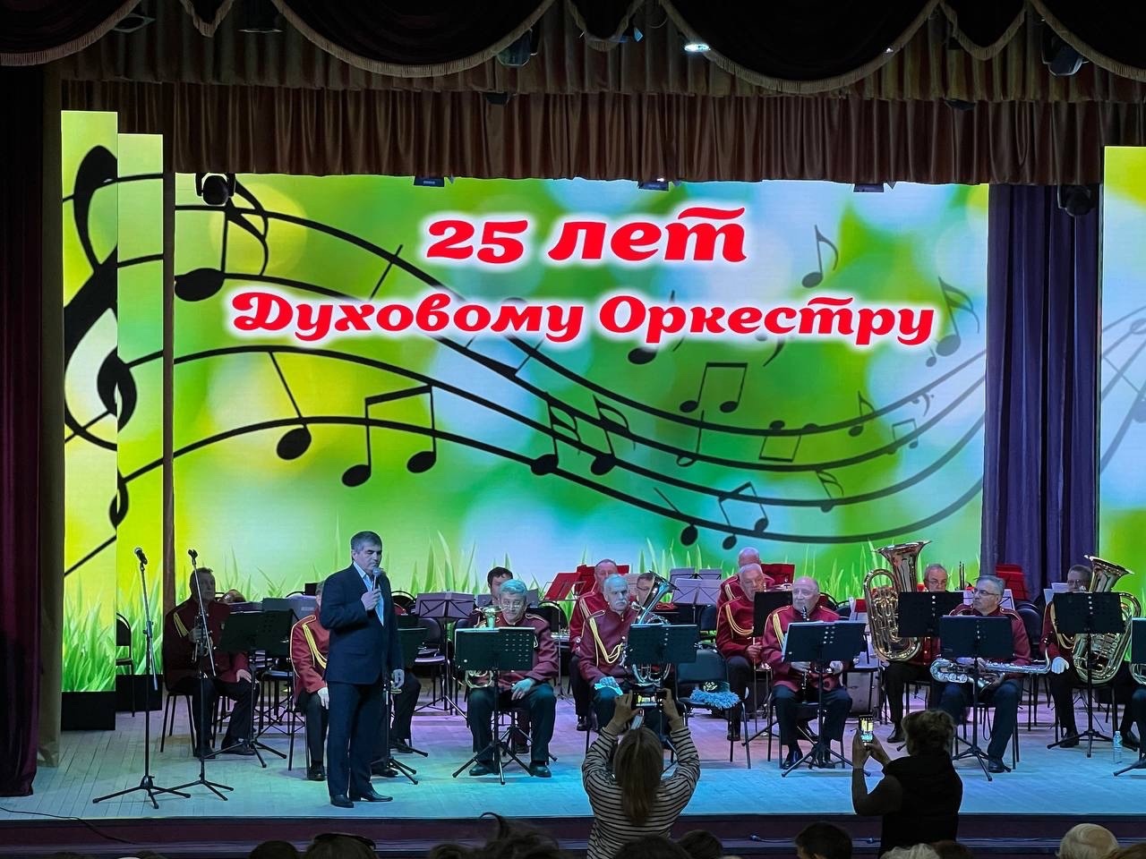 Сегодня, 01 мая 2024 года, в районном Доме культуры прошло мероприятие «ВИВАТ! Духовой оркестр, ВИВАТ!» к 25-летнему юбилею духового оркестра МБУ РДК, руководителем которого является Пономаренко Александр Сергеевич.