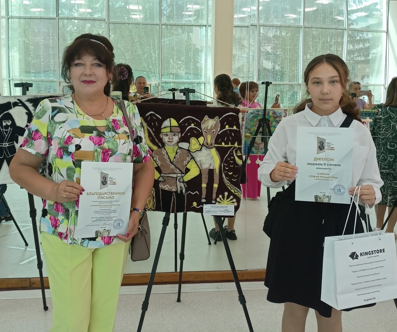22 июня в г.Уфа в фойе Культурного центра «Атайсал» наградили призеров республиканского конкурса для художников по войлоку среди детей и подростков «Сын Юлая — Салават», посвященного 270-летию со дня рождения поэта-сказителя, национального героя башкирского народа С. Юлаеву.