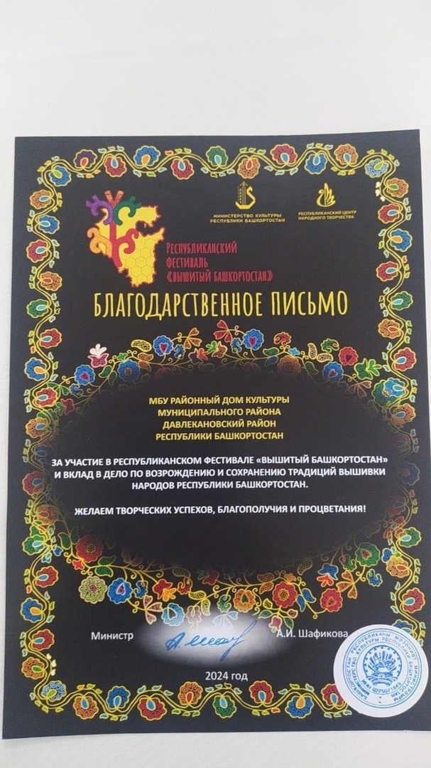 В Национальном музее Республики Башкортостан открылся Республиканский фестиваль «Вышитый Башкортостан». Фестиваль включает в себя теоретическую и практическую части и продлится два дня. Теоретическая часть посвящена знакомству мастеров и рукодельниц с богатым миром орнаментов и символов, используемых в башкирской вышивке. Участники узнают об их значении и правильном применении в своих работах.