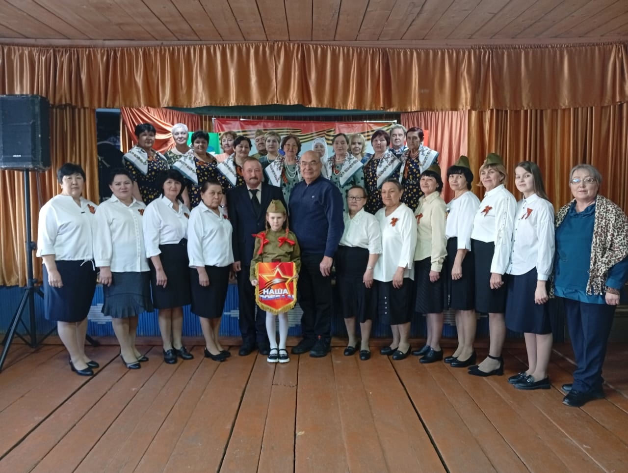 Сердце и душу вложили в выступление все участники – ведущие Кифая Минигулова и Нина Греценгер (она же солистка), аккомпаниатор и исполнитель песен Фаниль Хайретдинов, солисты Маргаритта Петрова, Камилла Ильясова, Анастасия Иванова, Ольга Акпасова, Фанзия Рахматуллина, Минислам Султангалиев, вокальный ансамбль «Миляшкай», «Наза», «Уршаковские узоры», звукооператор Сергей Кузнецов, водитель Виталий Нехорошков.. Зрительный зал сельского клуба был полон. И – ни одного равнодушного. И – аплодисменты, аплодисменты… Приходилось слышать, что в таком возрасте в художественную самодеятельность затянуть трудно, но жители сельского поселения Кадыргуловский сельсовет иначе жить не могут. Им дорого всё, что касается истории родного края и страны в целом. И потому, активно включились в районный фестиваль Марафон художественной самодеятельности «Наша Победа». Штандарт принял глава сельского поселения Соколовский сельсовет Ахтям Камалетдинович Шарафутдинов. Всем мирного неба над головой! Так и надеемся, что Победа будет за нами. Мы вместе, мы Сила.