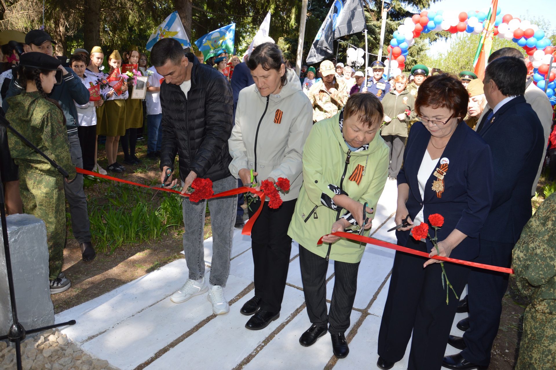 В селе Рассвет сегодня, 7 мая, прошло торжественное мероприятие, посвященное юбилейному Дню Победы и открытию обелиска землякам, участникам спецоперации, отдавшим свою жизнь за суверенитет и интересы Отчизны и стелы с именами погибших в Великой Отечественной войне.