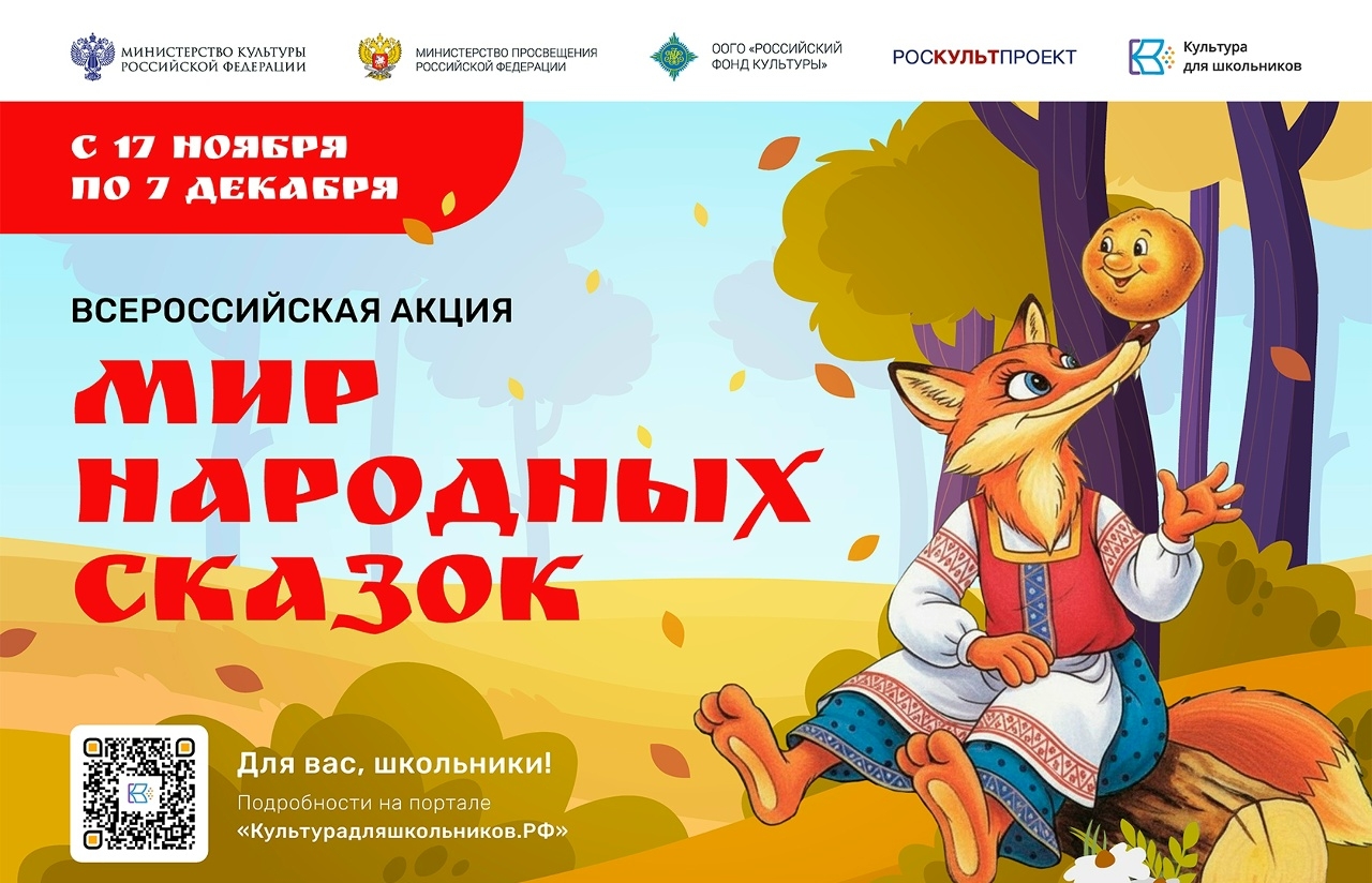 17 ноября 2025 года стартует всероссийская акция «Мир народных сказок», организованная в рамках проекта «Культура для школьников».